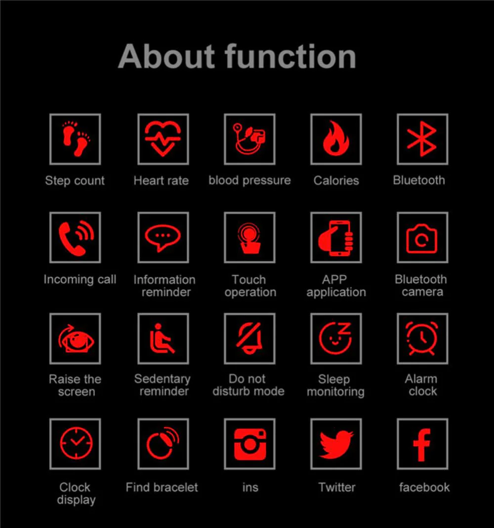 Sleep Monitoring The bracelet automatically detects your sleep and generates a sleep report. Also can be set to vibrate to help wake you up. Easy to install and remove-very easy to install or remove, once you connect it to your smart watch tracker, you can fix the watch on your watch anytime, anywhere. It always works well. ![]() Monitoring Recording heart rate is nice for knowing your health and exercise status, using reflection. Photoelectric signal detection principle records your heart rate, 24h continuous detection your heart rate. ![]() Fitness Tracker Accurately track and synchronize your steps, distance moved, calories burned, and active time to the mobile app. Support multiple sports modes, including walking, running, biking, skipping, badminton and table tennis ![]() Touch Screen High sensitive touch screen, can achieve various operations, information content, step, calories, distance, weather, heart rate and other functions to quickly view, thus opening intelligent life. Made of thermoplastic elastomer, it is more comfortable to wear. Package includes:
